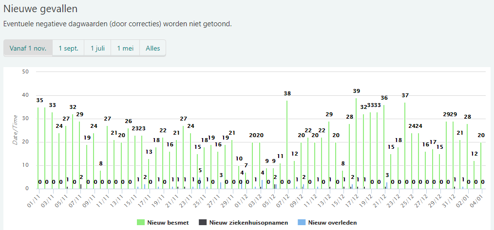 Het Rijksinstituut voor Volksgezondheid en Milieu (RIVM) meldt dat de afgelopen 24 uur in Nederland bij 6671 mensen het nieuwe coronavirus is vastgesteld. Zo zijn er in de regio 697 nieuwe positieve testen bij gekomen. Voor Ridderkerk betekent het, dat het aantal personen dat positief getest is ( geweest ) met het corona virus is toegenomen met 20. Het aantal Ridderkerkers dat positief getest is in de afgelopen 7 dagen opgelopen naar 154. Het aantal positief geteste Ridderkers sinds het begin van de pandemie staat op 2695. Het RIVM meldt voor de regio 19 nieuwe ziekenhuisopnames. Er zijn in de afgelopen 24 uur in de regio 19 nieuwe sterfgevallen gemeld.