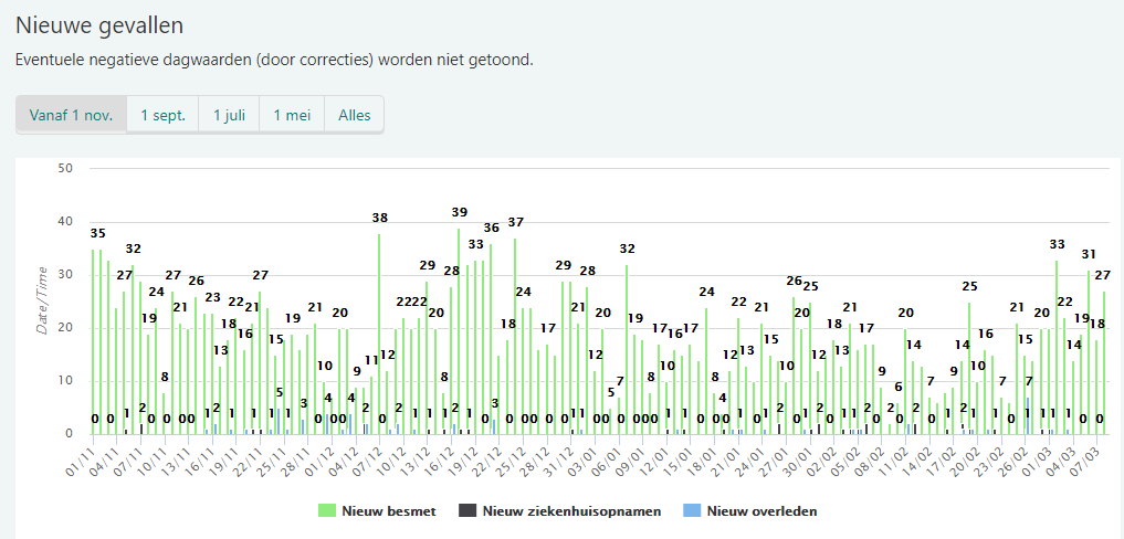 Het Rijksinstituut voor Volksgezondheid en Milieu (RIVM) meldt dat de afgelopen 24 uur in Nederland bij 3924 mensen het nieuwe coronavirus is vastgesteld. Voor Ridderkerk betekent het, dat het aantal personen dat positief getest is ( geweest ) met het corona virus is toegenomen met 27. Het aantal Ridderkerkers dat positief getest is in de afgelopen 7 dagen is 164. Het aantal positief geteste Ridderkers sinds het begin van de pandemie staat op 3667. Er zijn in de afgelopen 24 uur geen inwoners van Ridderkerk opgenomen in het ziekenhuis. Er zijn in de aflopen 24 uur geen inwoners van Ridderkerk overleden aan de gevolgen van het coronavirus.